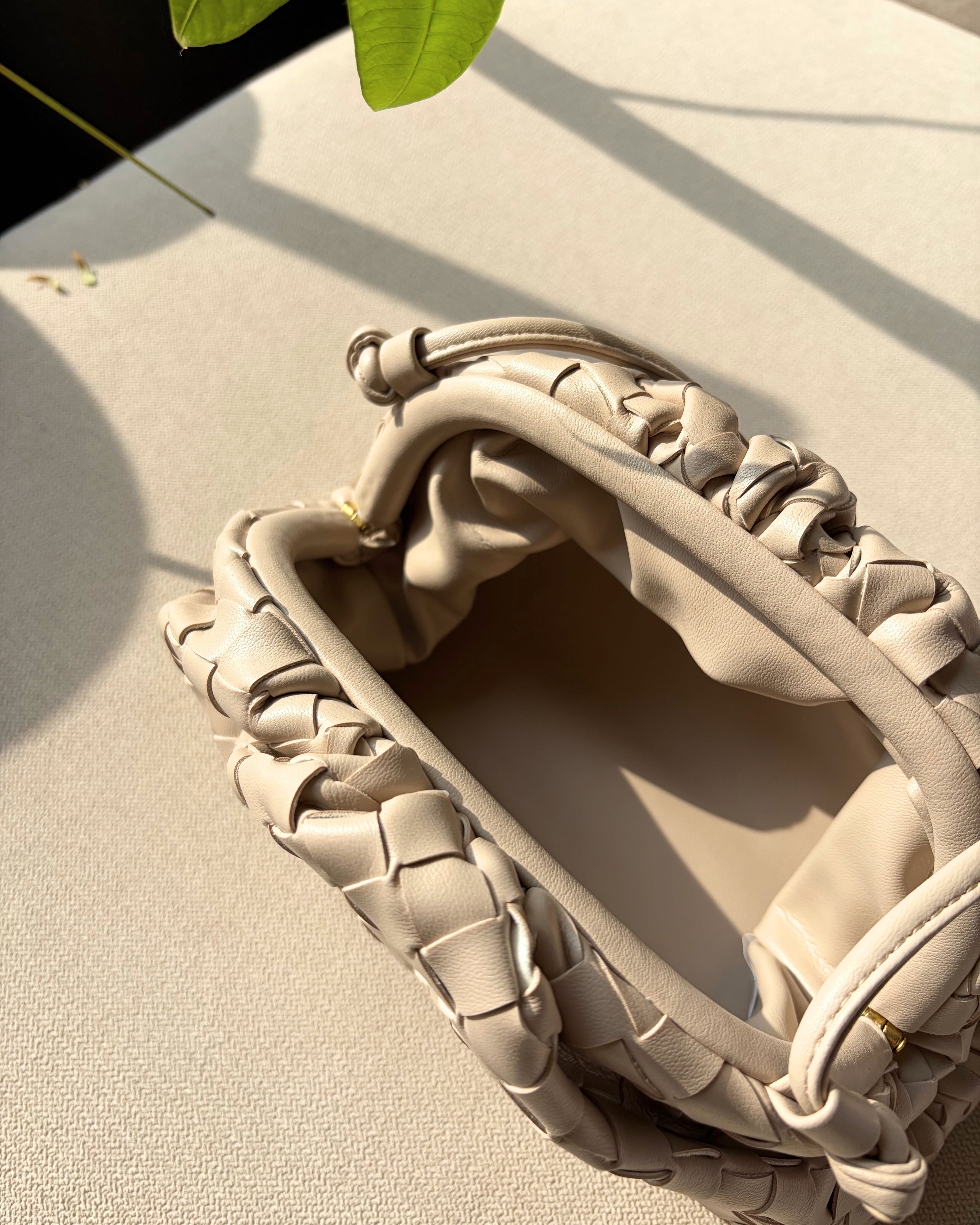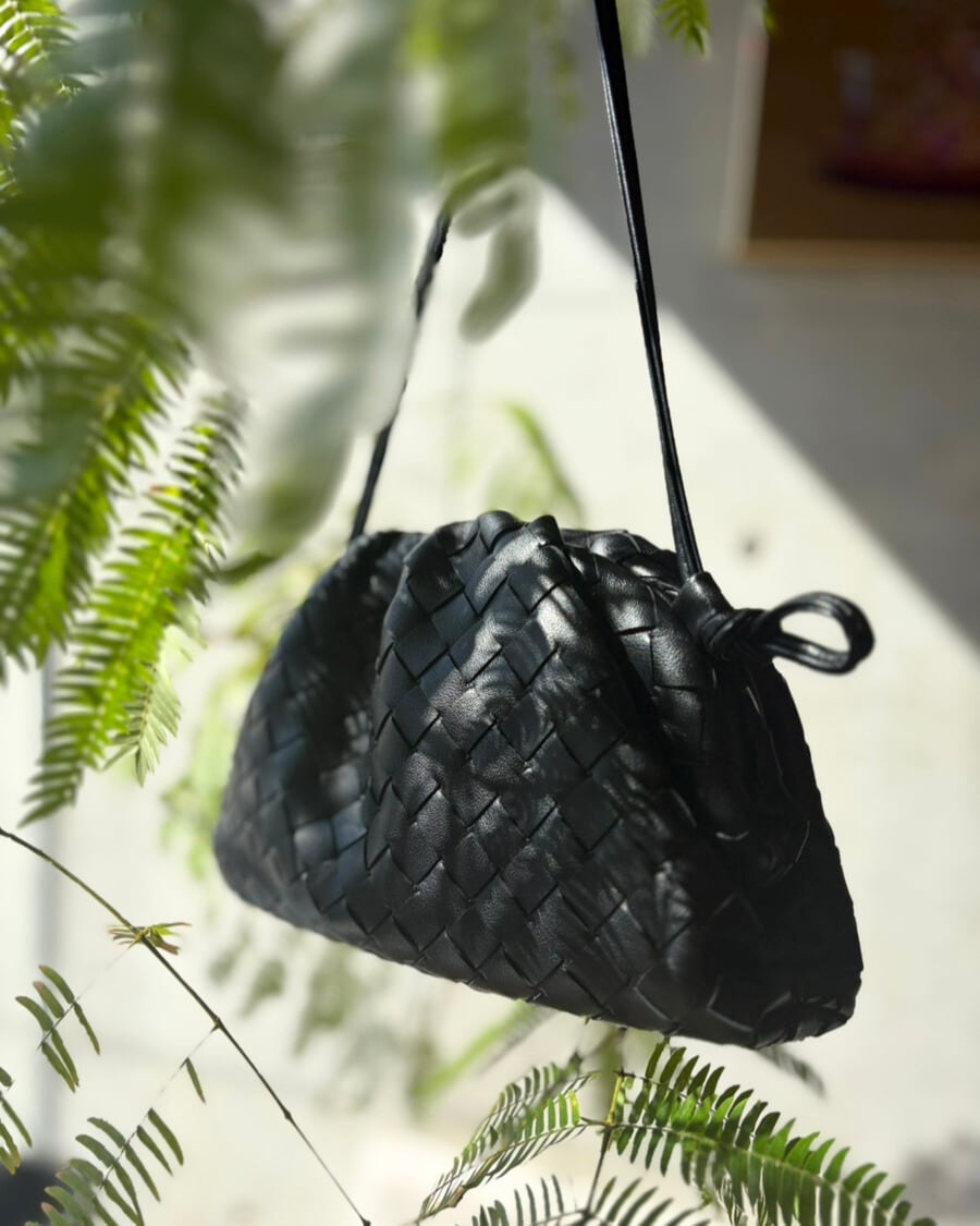 編み込みの立体デザインが、シンプルな服にほどよいアクセントを加えてくれます。